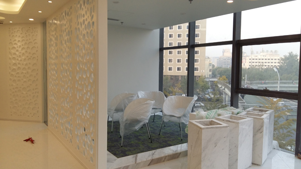 北京京愛康裝修項目,正在緊鑼密鼓的施工中,“在我們的設想中,景觀綠化可以為密集的辦公場所提供天然的氧氣。在當今時代,自然與技巧的融合是至關重要的。”將景觀、辦公、人三者有機融合,享受工作區的綠化。