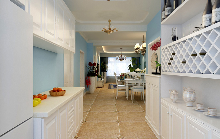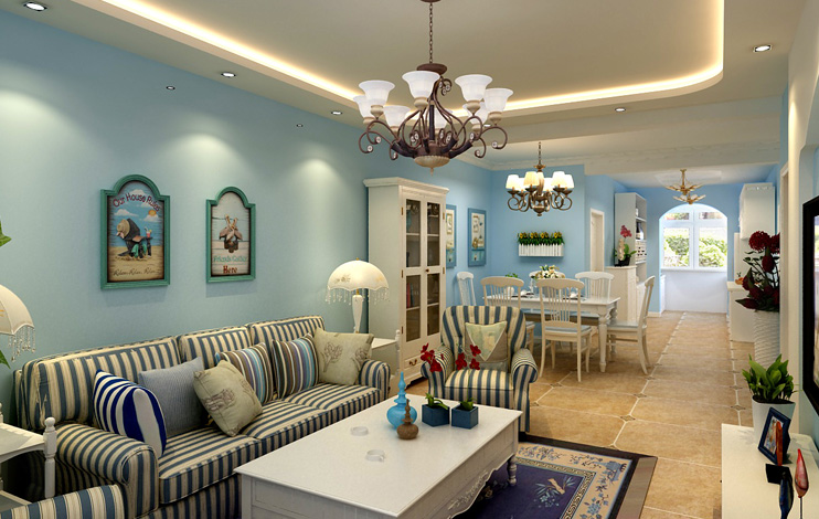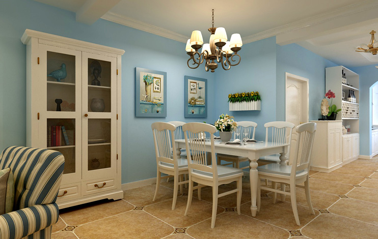 藍白是地中海風格一個最經典特點,配上土黃和紅褐色,搭配鏤空的通花,飄逸的窗紗,不僅給人以大海的廣闊與舒適,也能給人打底的穩沉與安逸;