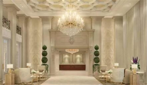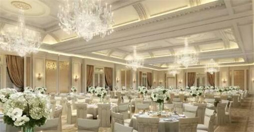 酒店的宴會廳同樣延續了奶白色與黃金色調的融合,彰顯宴會溫馨氛圍。