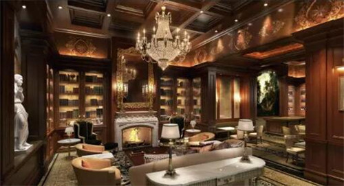 與大堂宴會廳淡雅色調產生鮮明色調對比的紅酒雪茄區,這個空間則采用暗木及石質色調貫穿,展現令人矚目的硬朗氣質。