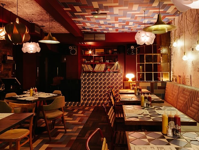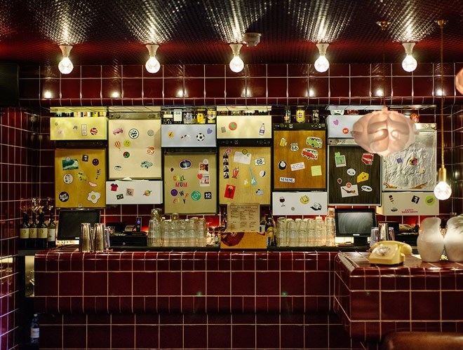 一個可愛的老式彈球機就是接待桌,舊款的任天堂機也很有特色。這里采用的是各種低耗的照明裝置,既有酒吧區(qū)歌廳風格的燈泡,也有就餐區(qū)那吸引人的燈飾。前面提到的那種熱狗可是這里菜單上的一大亮點。在周五午餐的時候,人們可以來這里買了這種外帶食物拿回家或者出去吃。