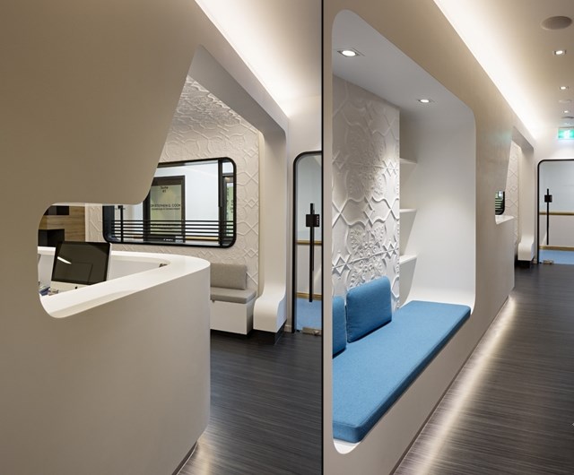 創造一個可估計的雕塑來讓人進行嘗試,這樣會給顧客和路人留下印象。旁邊的咨詢室就是要保持理性,就是要改造成和皮膚后的骨架一樣的。將病人和他們的經驗作為優先考慮的情況,該項目就是要創造超越行政以及醫療程序的實踐的醫治環境。