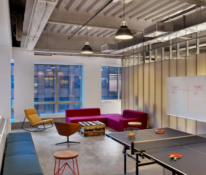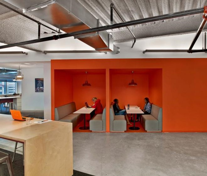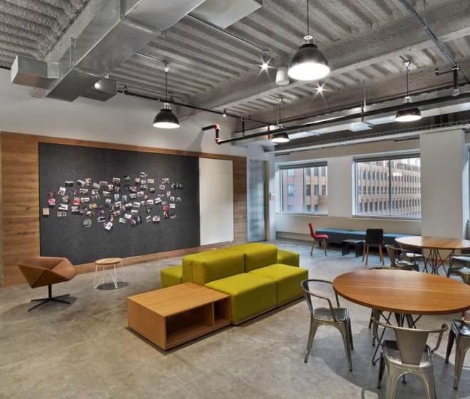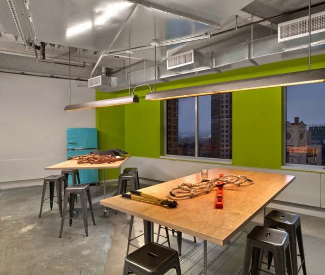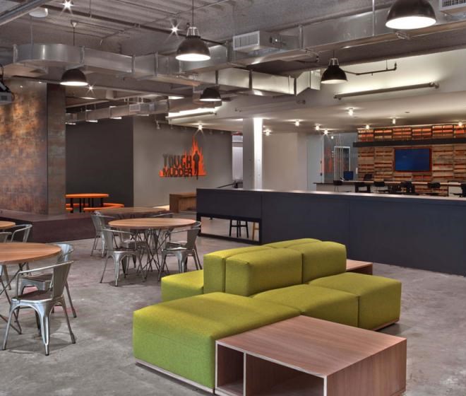 客戶進入辦公室應該可以通過辦公室的顏色、形狀和工作氛圍來描述出該公司是做什么的,并且怎么做的。Tough Mudder的總部就是這樣的設計作品,該辦公室是由M Moser Associates完成的。