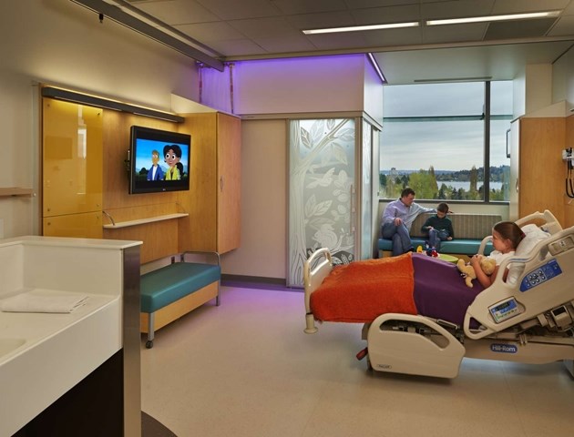 擴(kuò)展的空間十分靈活,給病人提供了安全的治療環(huán)境,同時(shí)也提高了醫(yī)生的工作效率。希望大樓在一樓有急救部門、治療部門還有兩個(gè)癌癥治療中心。總共80個(gè)床位,能夠擴(kuò)展到192間。第八層是第一批積極對待癌癥的年輕人接受治療的地方。風(fēng)景和室外的元素對他們治療有好處。西雅圖兒童醫(yī)院是美國第一批運(yùn)用精益方法到治療方法上的。兒童在早期接觸這種持續(xù)過程改善方法是在一個(gè)組織內(nèi),通過提高質(zhì)量和安全性達(dá)到最好的治療方案。