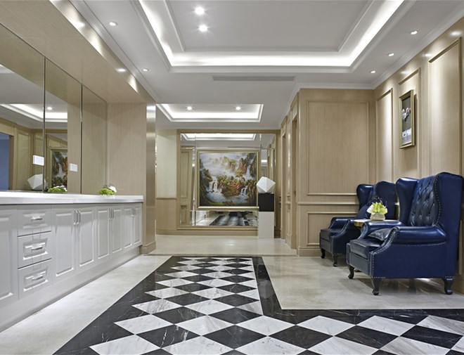 從1685年,英國人Charles Allen出版了第一部牙科教科書《The Operator for Teeth》起。到1728年,Pierre Fauchard出版《Les Chirurgien Dentiste ou Traite des Dent(外科牙科醫生)》一書;它首次將牙科學看作是一門科學和職業,歷史的年輪在推動牙科的發展與進步,從理論到實踐,牙科從歐州起源并快速發展,設計師在設計本案時,一直在思考一個私立醫院的設計歸屬及內在的氣質,因此從定位上就以“英倫、藝術、明快、”為主要設計主題,打造中國最具有特色的口腔醫院。