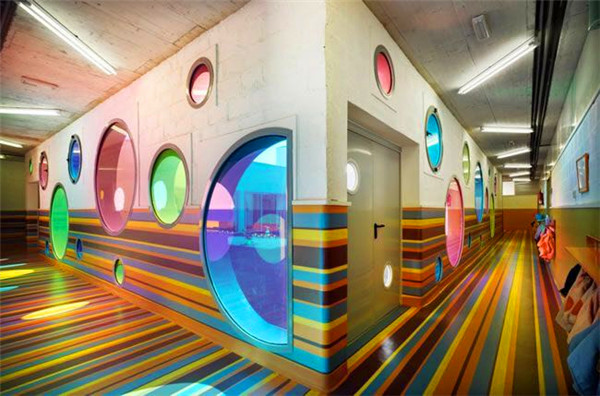 本案設計以形狀為設計元素,從外觀到室內以彩色幾何圖形貫穿整個設計,幾何圖形的概念源于數學中的幾何學,辭海中關于幾何學的定義是:“研究空間圖形的形狀,大小和位置的相互關系的一門科學”,而幾何學又是圖案學的一個分支。