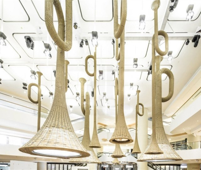 “this is OUR place”以懸掛在中庭天花板上的成對的大型音樂號角為特征,懸在空中的樂器是由柳條編織而成,與青銅金屬表面形成溫暖的氣氛。
