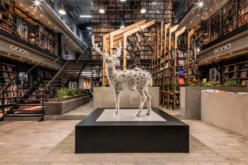 是上海東奇建筑師事務所的彈性書店,這個斜屋頂的亭子受到了英格蘭薩默塞特Hauser&Wirth畫廊的糧倉,這是一個傳統的英國糧店,坐落在Staddle石頭上。